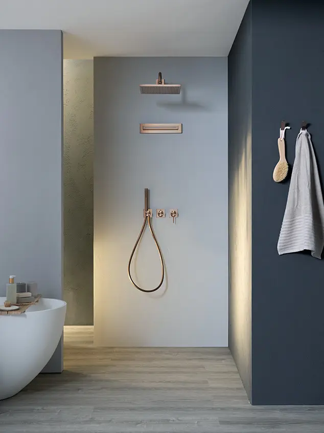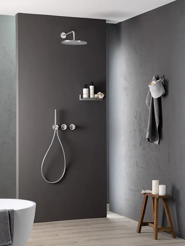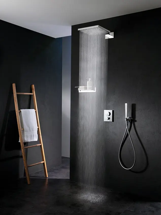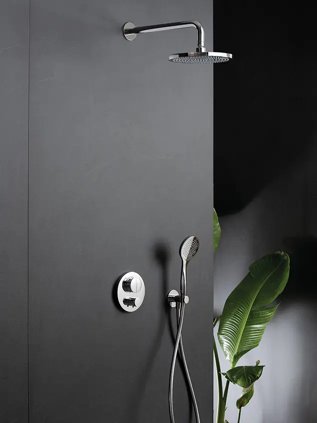 The extreme care in details joins a refined simplicity of shapes in the wall or ceiling shower systems by Almar. Our shower heads with arm are available in different designs and size, and combine with cascades and body-jets, for a complete multifunction system suitable even for small spaces.